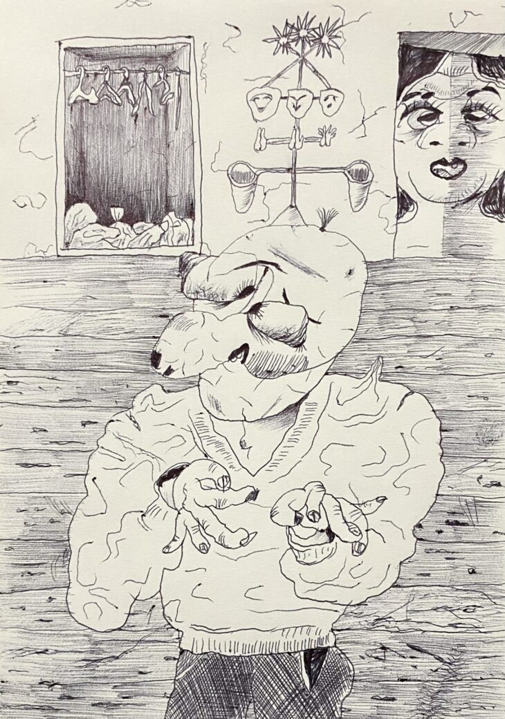 幼い頃、実家の木造一軒家の2階で目を覚ますと、決まって私はでんぐり返しの途中で、でんぐり返りきらないくらいの体勢で硬直していた。1階で朝食を作っているような音や誰かの足音が聞こえる。私はお尻を天に向けて、私の腹をずっと見ている。この体勢が、解除できない。うんともすんとも動かないんだ。動かすのを心から諦めると、それは解除されていた。