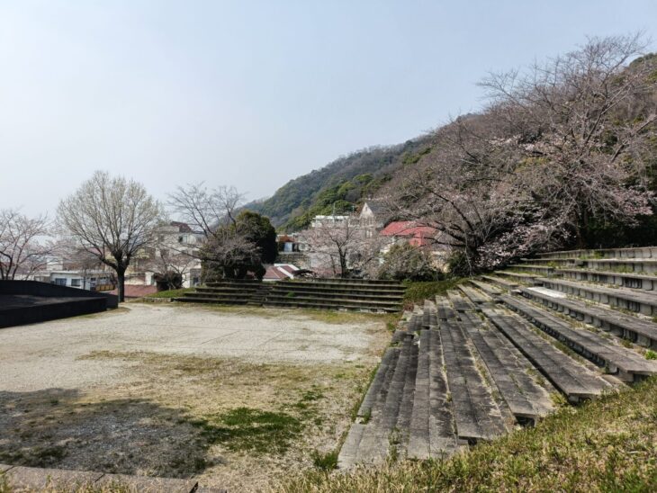 摩耶山の麓を歩いていると、とても開けた空間に出くわした。かつては演劇やフォークコンサートなど色んな催しが行われていたのだろうか。なんとなくいつまでも残って欲しい空間だった。